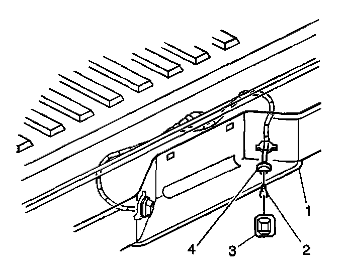 3. Install the wiring (4) to the back of the license lamp assembly.