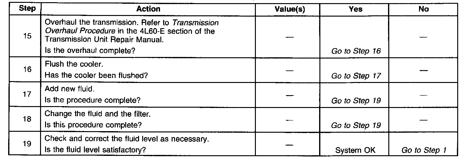 Transmission Fluid Check - 4L60-E / 4L65-E Automatic Transmission1. Start the engine and operate the vehicle for 15 minutes or until the transmission fluid reaches an operating temperature of 82 - 93°C (180 - 200°F).