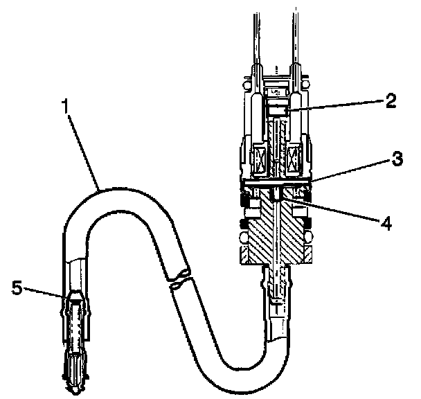 Each fuel injector assembly is a solenoid-operated device, controlled by the control module. The fuel injector assembly meters the pressurized fuel through a poppet nozzle valve (5) to a single engine cylinder. The control module energizes the flow control solenoid (2), which opens an armature valve (3), allowing fuel to flow past the valve and through a flexible fuel pipe (1) to the poppet nozzle valve. An increase in fuel pressure causes the poppet nozzle ball to open from its seat against the extension spring force. This allows the fuel to flow from the nozzle.