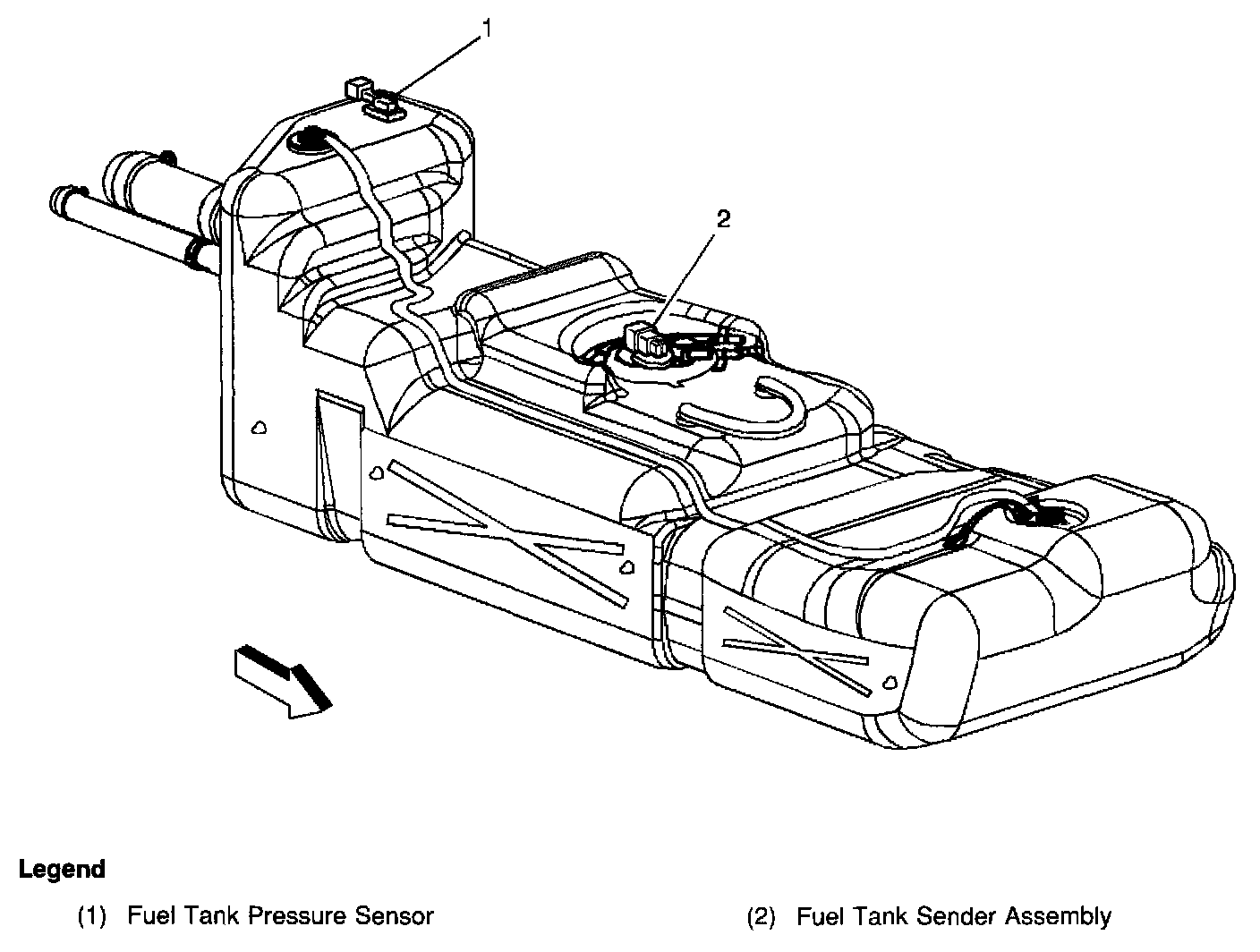 The Fuel Pump and Sender Assembly is located in the primary fuel tank.