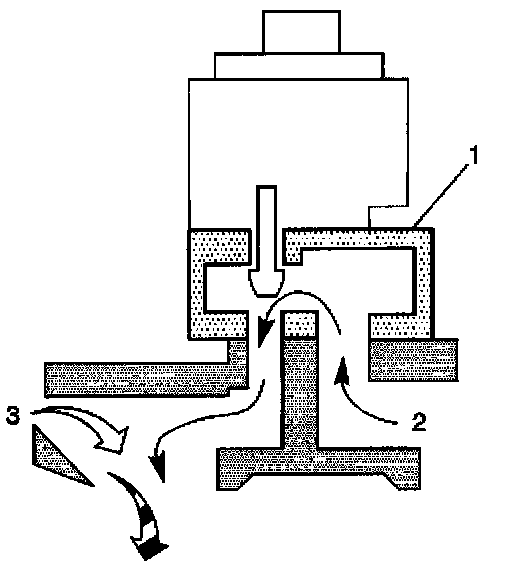 A pulse width modulated signal from the VCM enters the valve through an electrical connector which energizes the solenoid, or bobbin and coil, assembly (3). This causes the armature assembly (4,6) to be pulled upward, lifting the pintle (5) a variable amount off the base.
