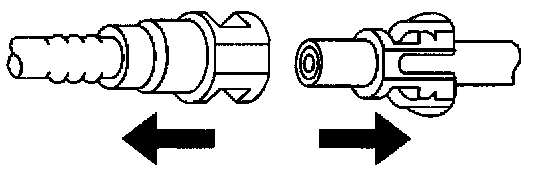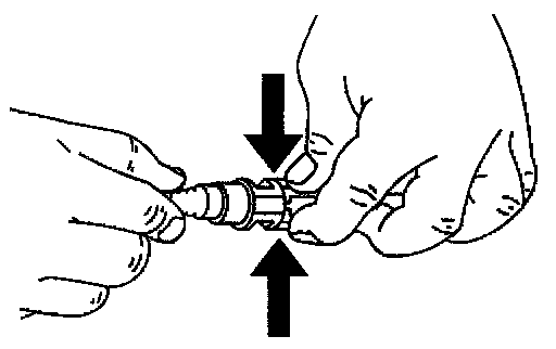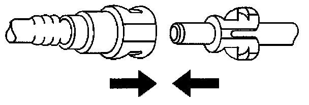 2. Push both sides of the quick-connect fitting together in order to cause the retaining tabs/fingers to snap into place.