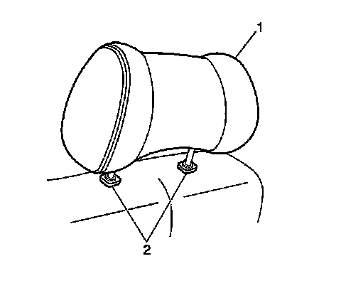 1. Install the headrest (1) into the retainers (2).
