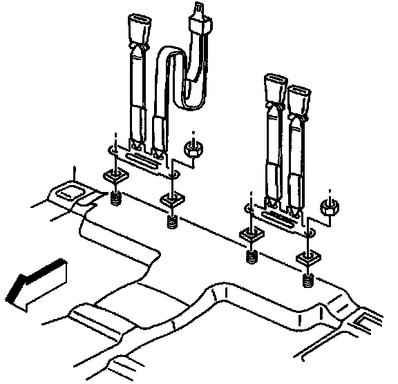 1. Position the child seat in the front seat center or the front seat right. Use the 2nd seat center occupant lap belt latch plate if the seat is unoccupied.