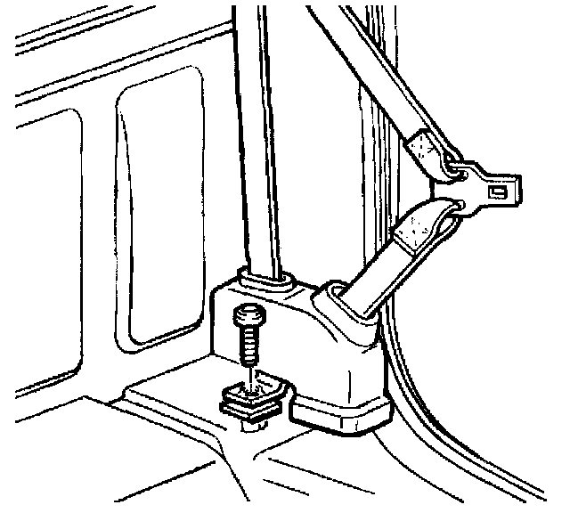 3. Remove the bolt retaining the retractor to the floor panel.