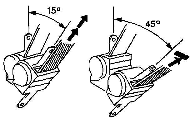 4.3. Ensure that the seat belt webbing can be pulled from the retractor at an inclination of 15 degrees or less and cannot be pulled from the retractor at an inclination of 45 degrees or more.