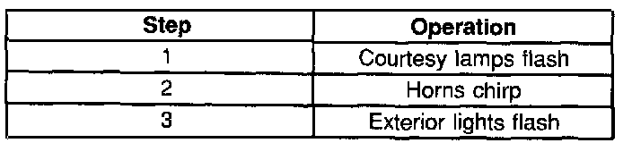 In the diagnostic mode, diagnostic trouble codes (DTCs) are displayed in numerical order. The first DTC displayed is always DTC 12, followed by any current DTCs (21 to 24) or any history DTCs (31 to 34). Remote control door lock transmitter diagnostic DTCs (41 to 45) will then be displayed if activated while in the diagnostic mode. The last DTC displayed is the begin configuration display (55). The first number following DTC 55 is the hardware configuration.