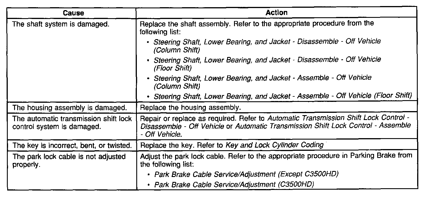 Key Cannot Be Removed In the Off Lock Position - Tilt Column