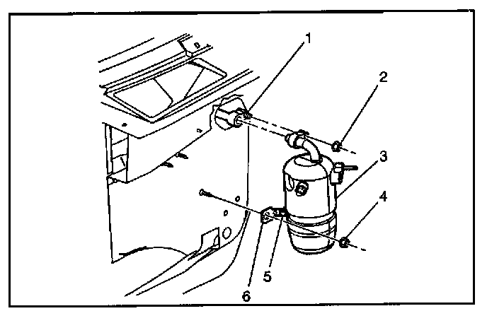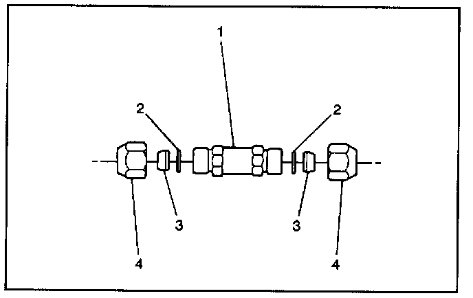 13. Remove the nuts (4), the ferrules (3), and the 0-rings (2) from the A/C refrigerant filter (1).