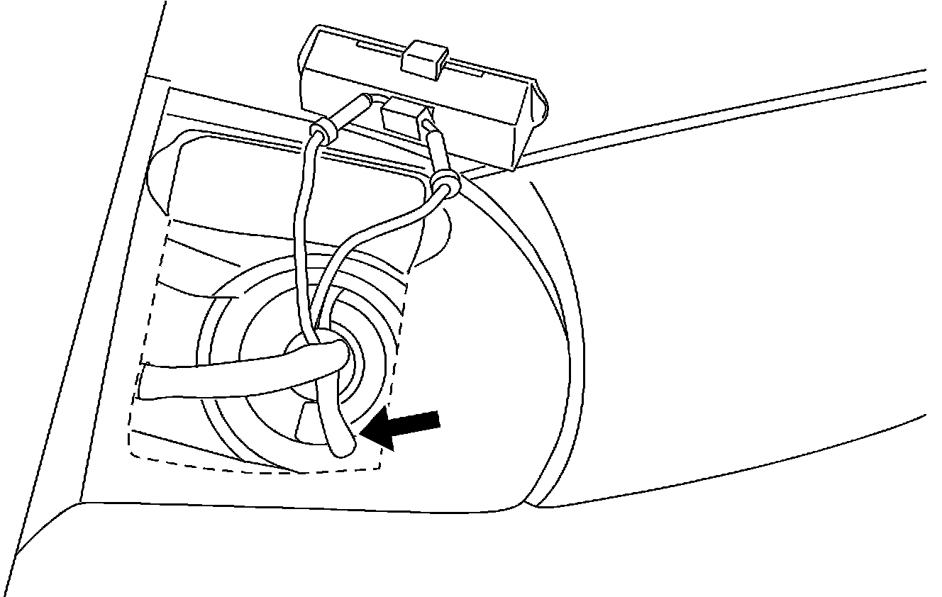 3. Pull the wires toward you and insert the "J" hook through the hole in the base of the mirror behind the wire harness. Refer to the illustration above.