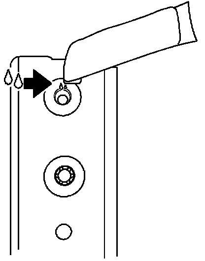 4. While holding the sachet vertical, slowly dribble the adhesive into the edge of the bolt hole as shown, ensuring that the adhesive flows into the joint between the seat rail and the zinc block. DO NOT pour the adhesive down the center of the hole. The object is to let the adhesive "wick" between the zinc block and the seat rail in order to bond the two pieces together.