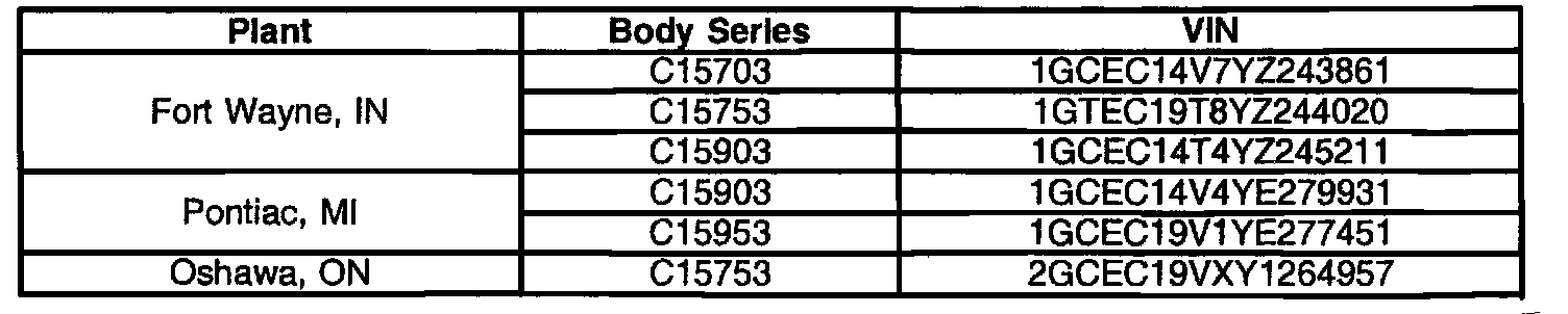 1999-2000 Chevrolet and GMC C1500 Pickup Trucks (Silverado and Sierra)