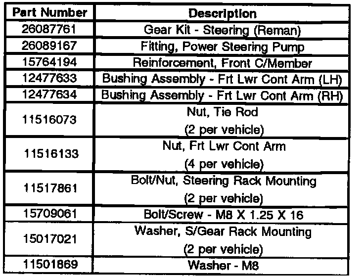 ^ The steering rack must be replaced with a revised rack.