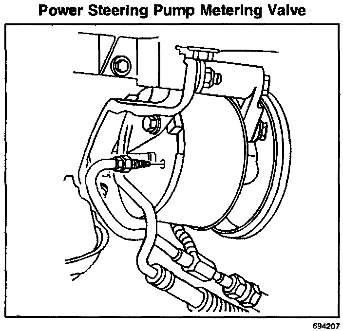 ^ The power steering (PS) pump metering valve must be replaced with a revised fitting.