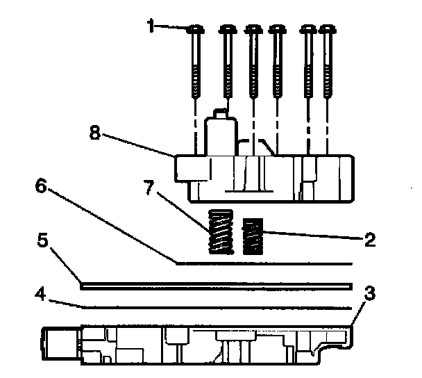 6. Remove the control valve body spacer plate (5).