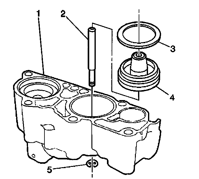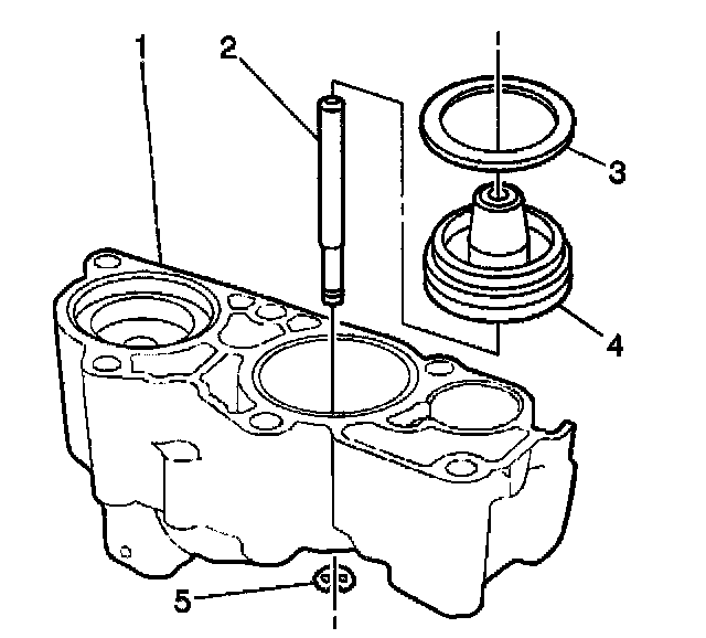 4. Remove the 4th clutch accumulator piston (4) and pin (2) from the accumulator housing (1).