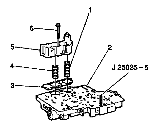 1. Install the J25025 into the control valve body bolt hole where the manual shaft detent roller and spring assembly is mounted.