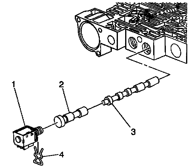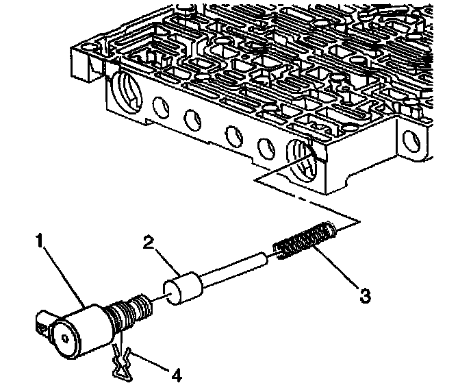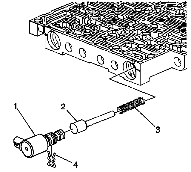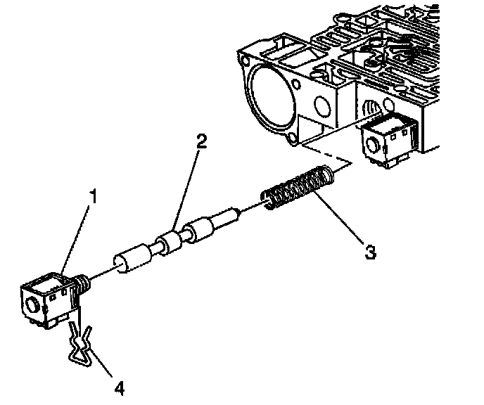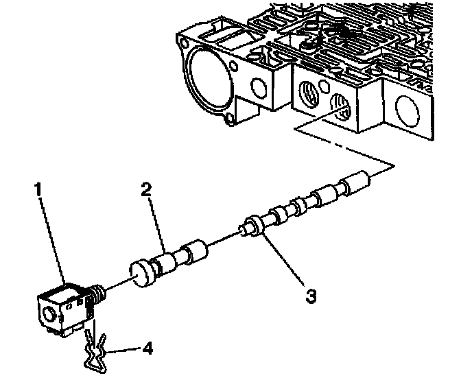 1. Remove the solenoid retainer (4) and the 1-2 shift solenoid (1).