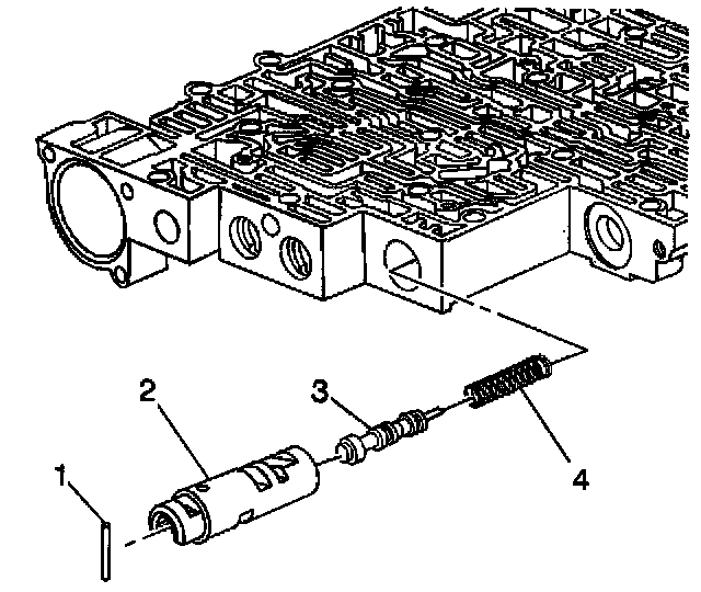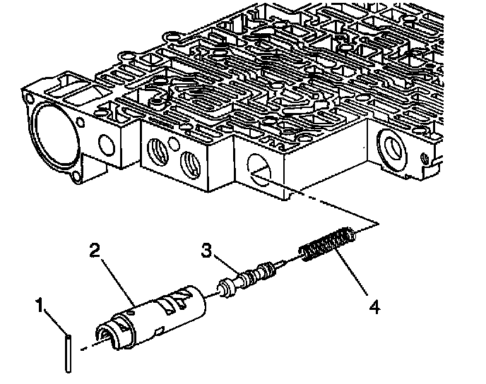 24. Remove the regulator apply valve (4) and the regulator apply spring (3) and the isolator valve (2).