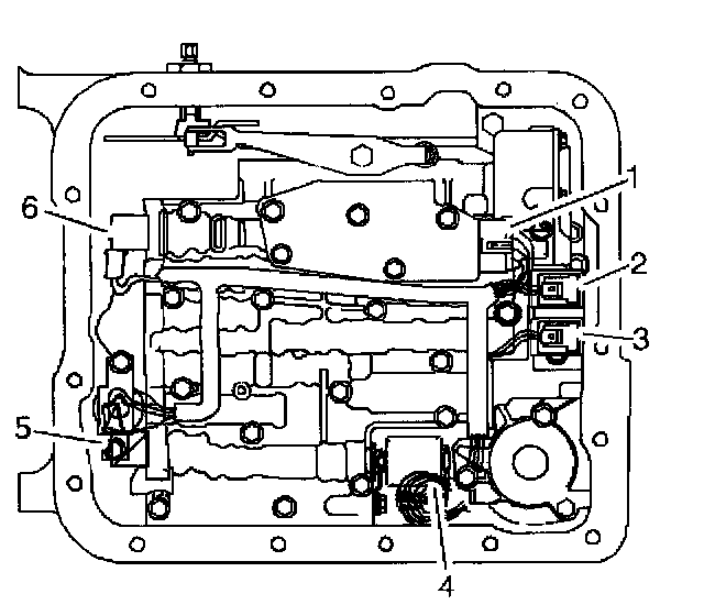 Removal Procedure1. Remove the oil pan, gasket, and filter. Refer to Automatic Transmission Fluid/Filter Changing.