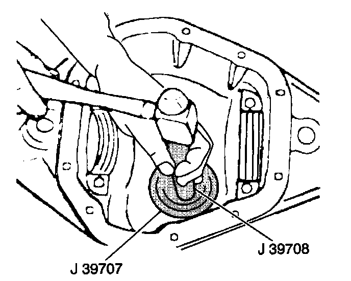 2. Drive the inner bearing cup into the axle assembly using the J39707 and J39707