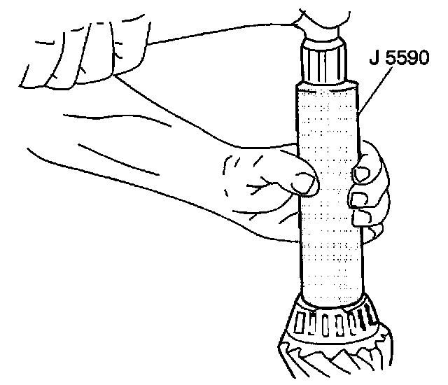 3. Install the inner bearing cone on the pinion. Drive the inner bearing cone onto the pinion shaft using the J5590.