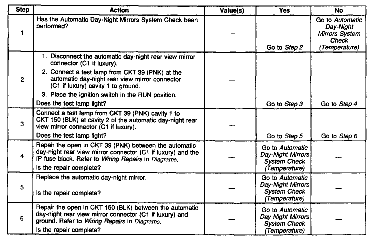Compass/Temperature Display Inoperative - Mirrors