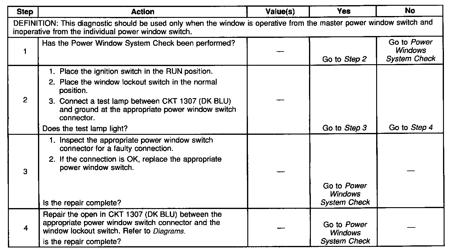 Power Windows Inoperative (4-Door Suburban)