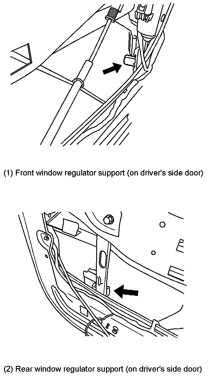 9. Inspect the window regulator supports (both front and rear supports).