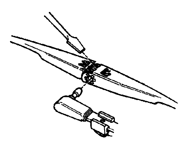 2. Pivot the screwdriver so that the blade tip presses downward on the retainer spring and releases the wiper blade from the pin of the wiper arm.