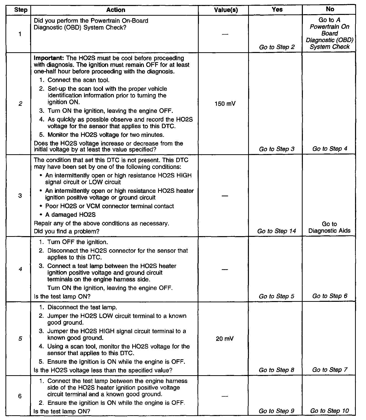^ An open or a short to voltage on either the HO2S signal or HO2S low circuits