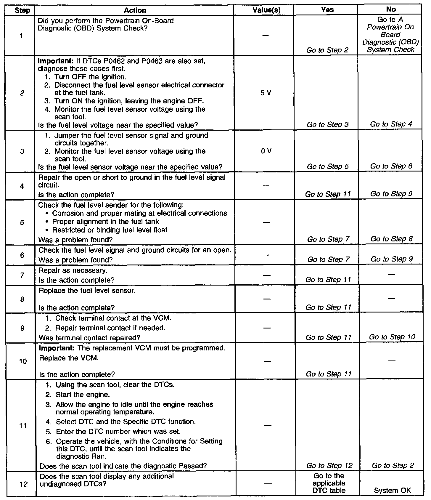 3. This step determines if the fuel level sensor signal and ground circuits are OK.