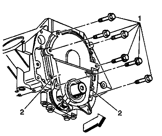 5. Install the engine front cover bolts (1).