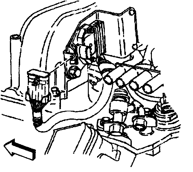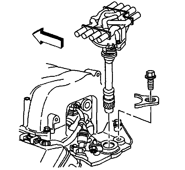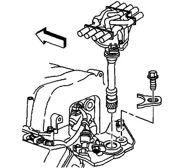 8. Install the distributor hold down clamp bolt to the lower intake manifold.