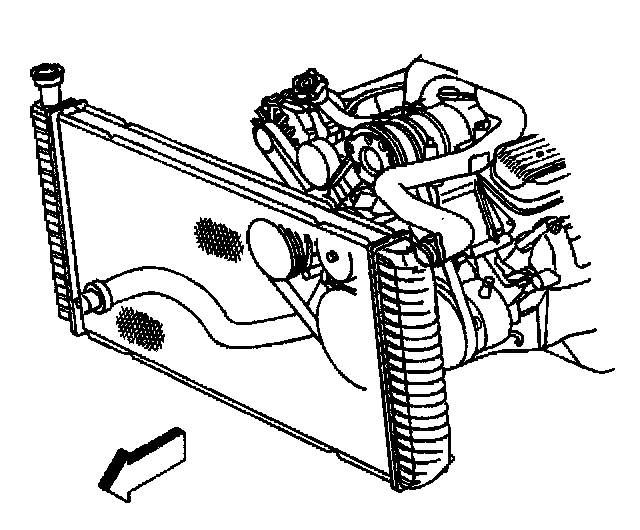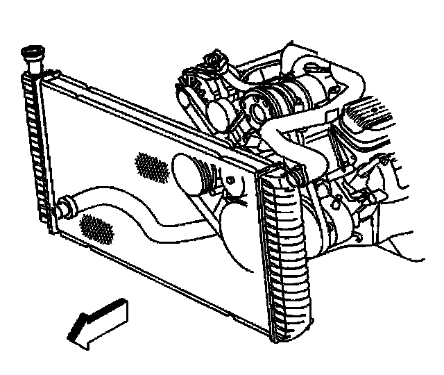 13. Remove the radiator from the vehicle. Refer to Radiator Replacement in Cooling System.
