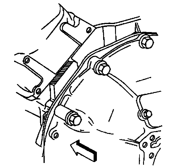 19. Install the generator mounting bracket to the engine block. Refer to Accessory Mounting Brackets Replacement (AC) or Accessory Mounting Brackets Replacement (Generator).