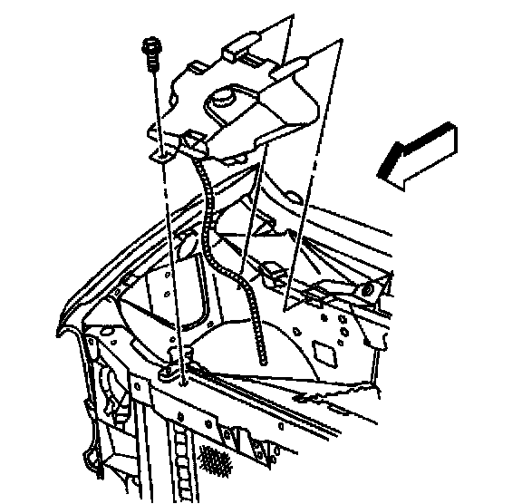 8. Remove the coolant reservoir. Refer to Coolant Recovery Reservoir Replacement in Cooling System.