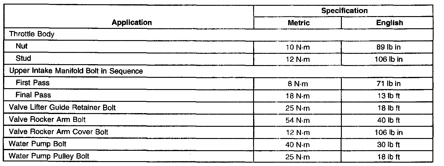 Fastener Tightening Specifications