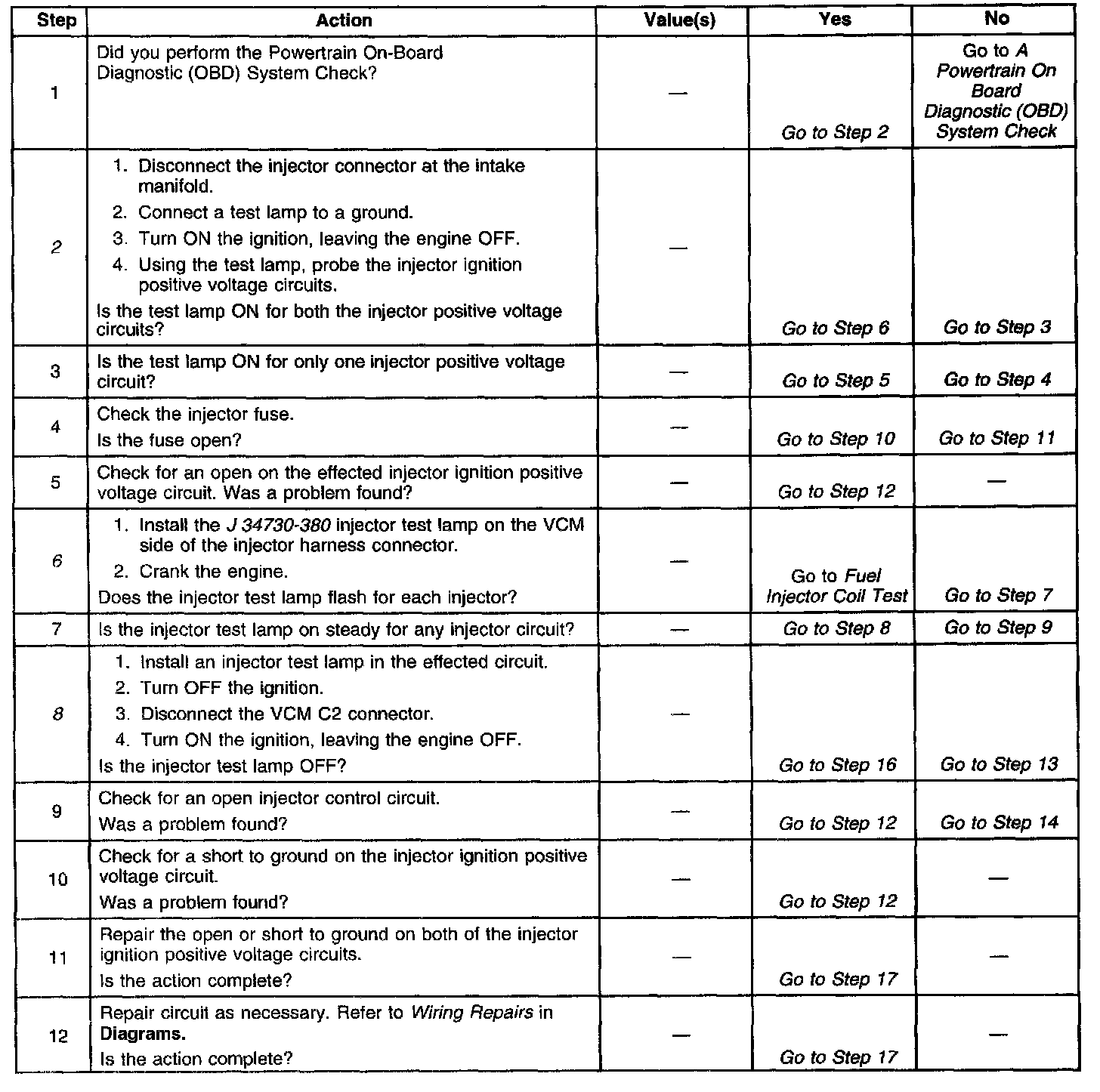 2. This step determines if the ignition feed circuit to the injectors are OK.