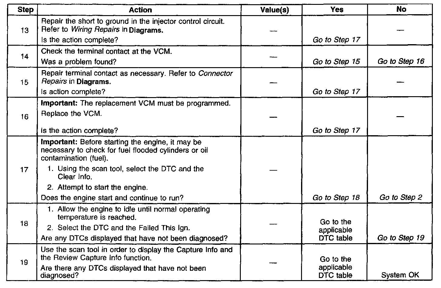 8. This step determines if there is an internal VCM short to ground for an injector control circuit.