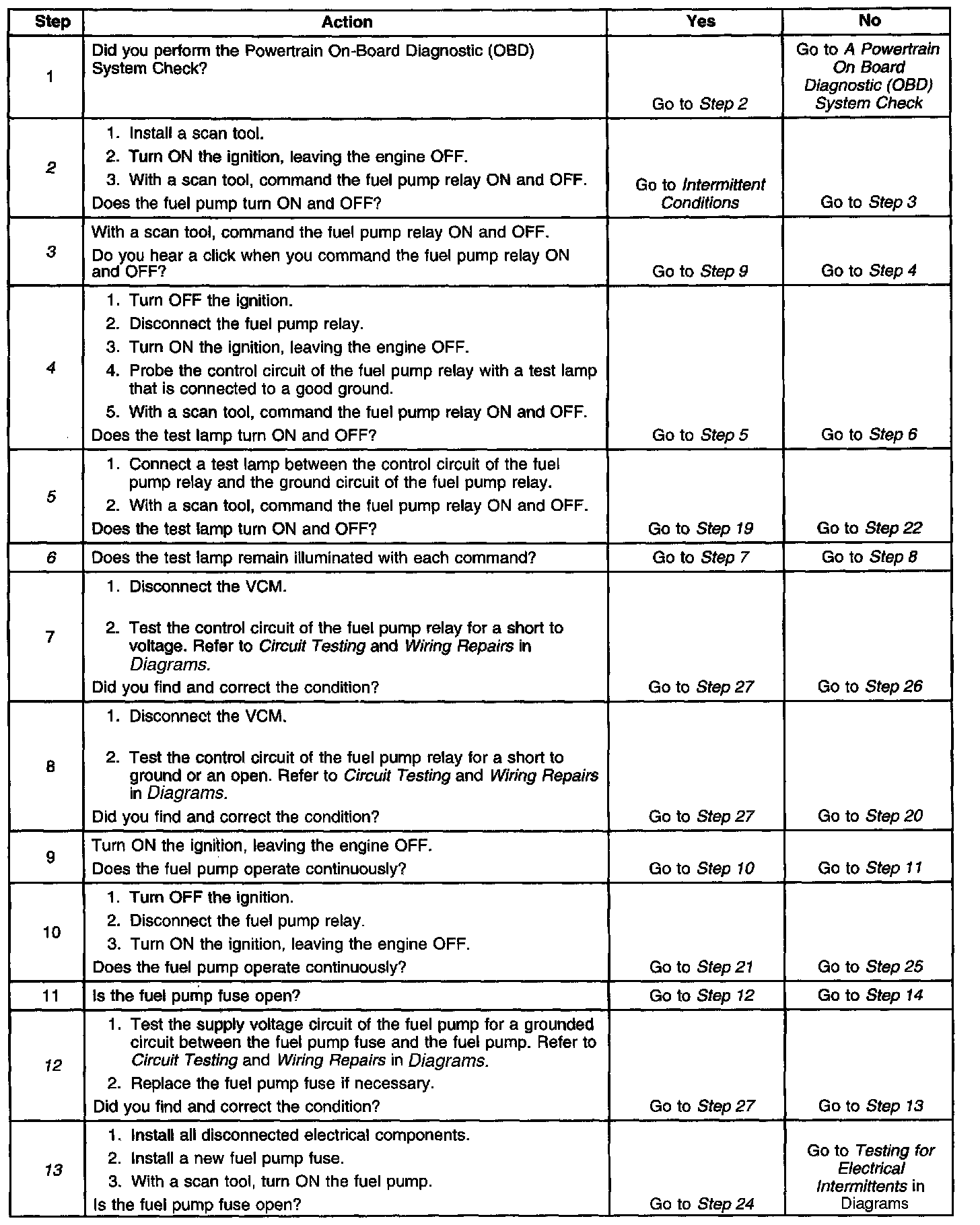 If the fuel pump relay circuit checks out OK, refer to Fuel System Diagnosis. Component Tests and General Diagnostics