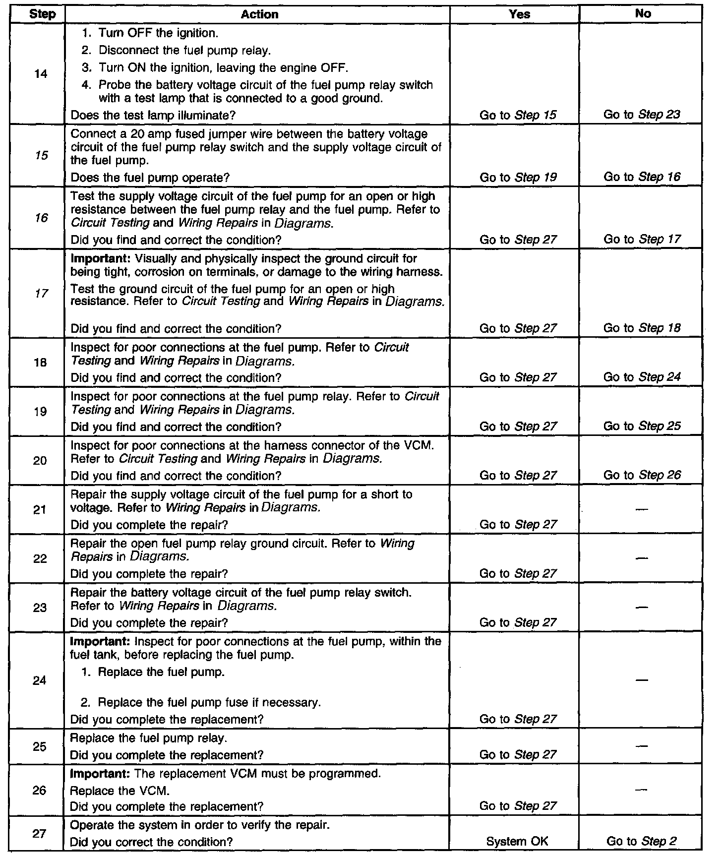 13. This step determines if the condition with the circuit is intermittent. If the fuse does not open, inspect the supply voltage circuit between the fuse and the fuel pump for an intermittent condition.
