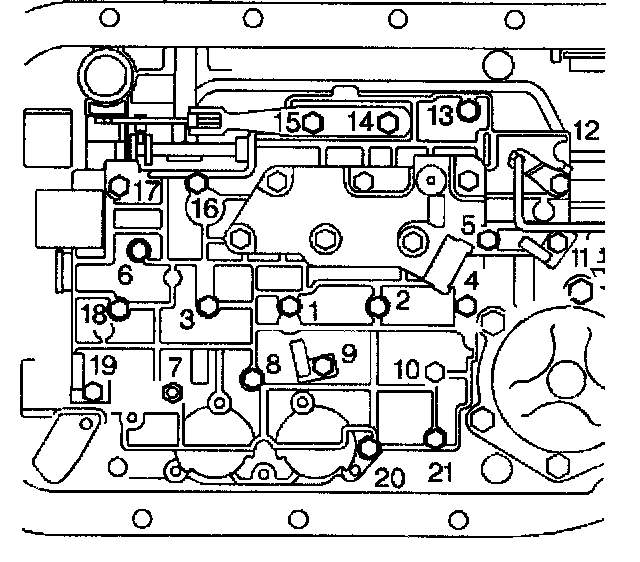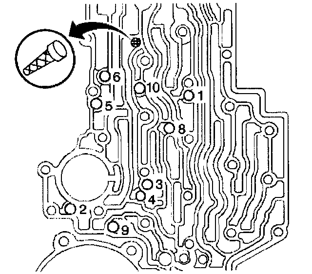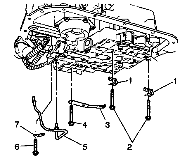 2. Remove the Transmission Fluid Pressure (TFP) manual valve position switch bolts and the TFP valve position switch).