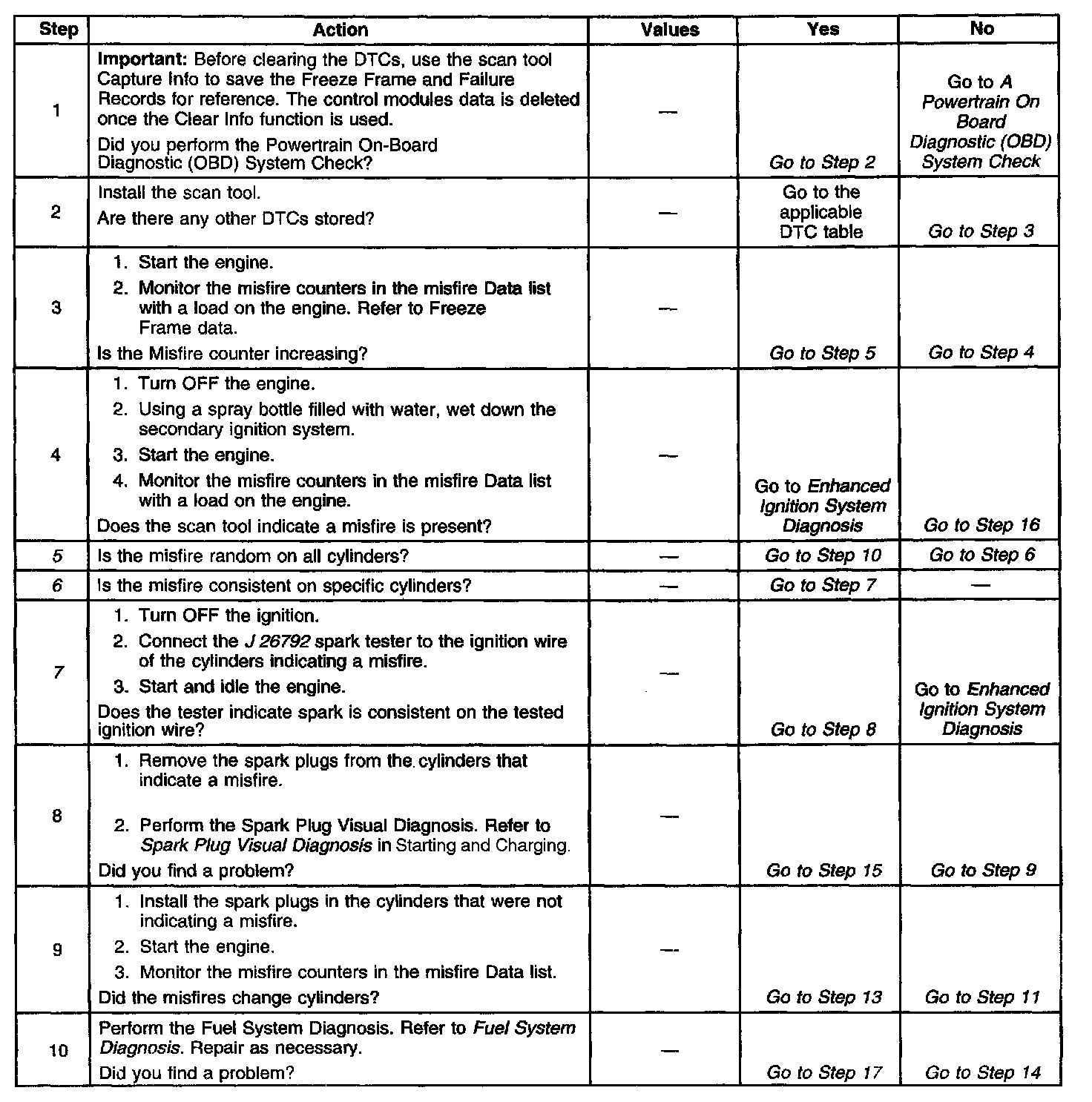 - Check the fuel condition and quality. Dirty or contaminated fuel could cause a misfire condition. Water contamination in the fuel system can cause a single cylinder to misfire as well as cause a random misfire. Refer to Alcohol/Contaminants-in-Fuel Diagnosis. Component Tests and General Diagnostics
