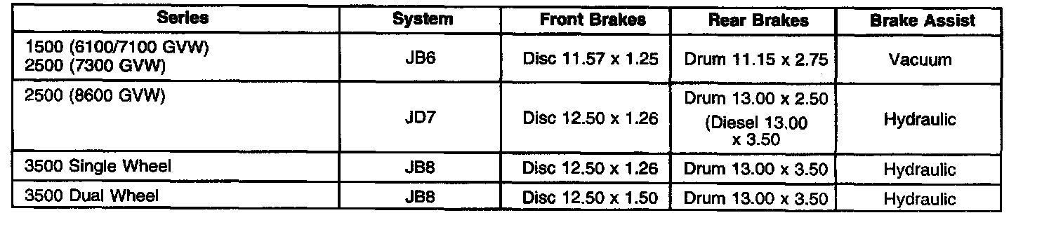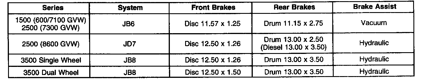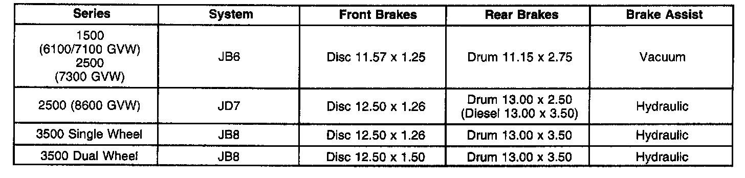 General Brake System Specifications