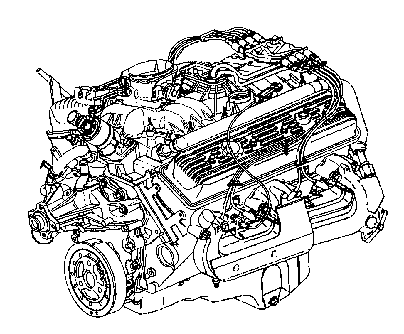 The engine block is made of cast iron and has eight cylinders arranged in a V shape with four cylinders in each bank. The cylinder block is a one piece casting with the cylinders encircled by coolant jackets.