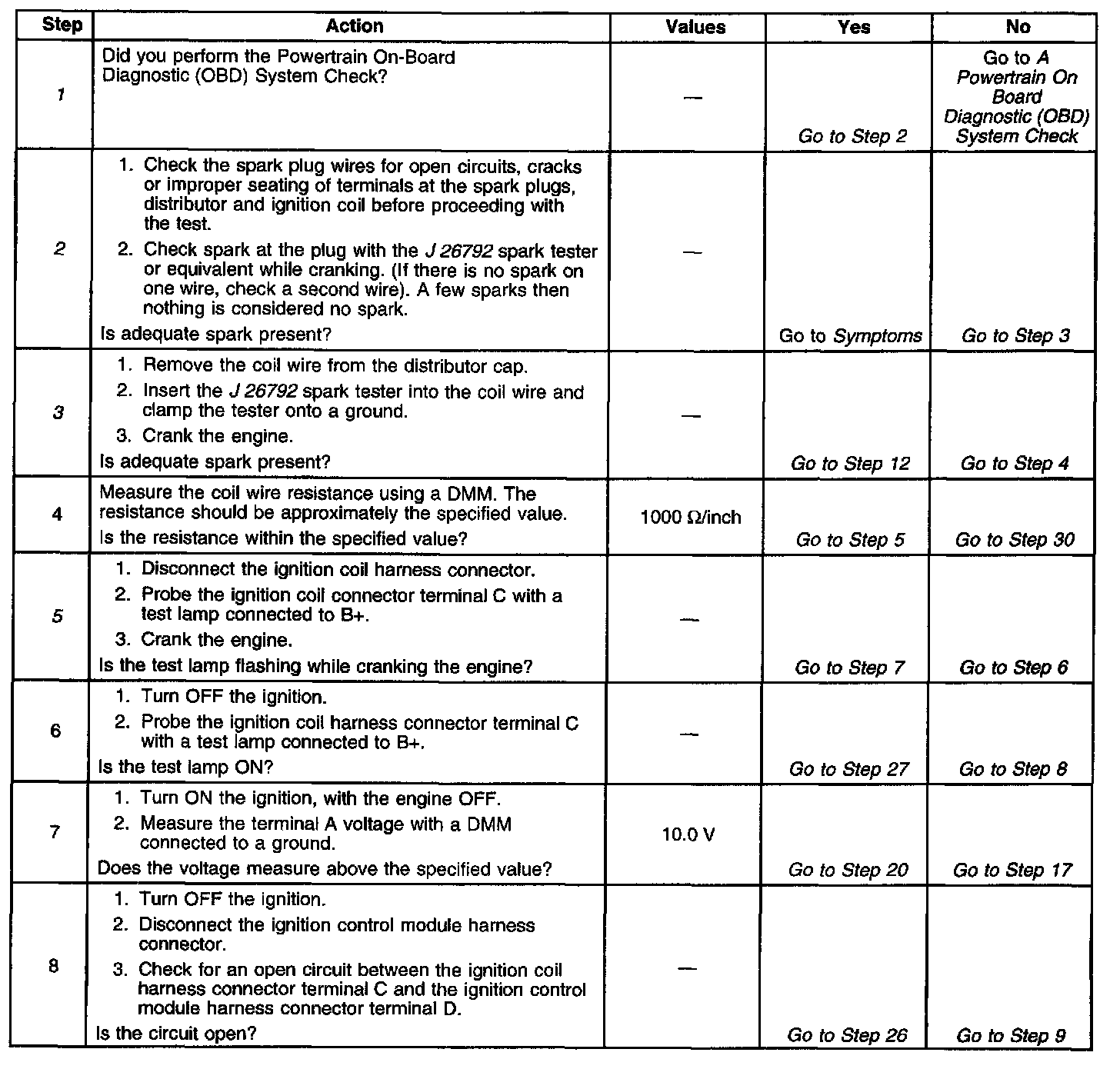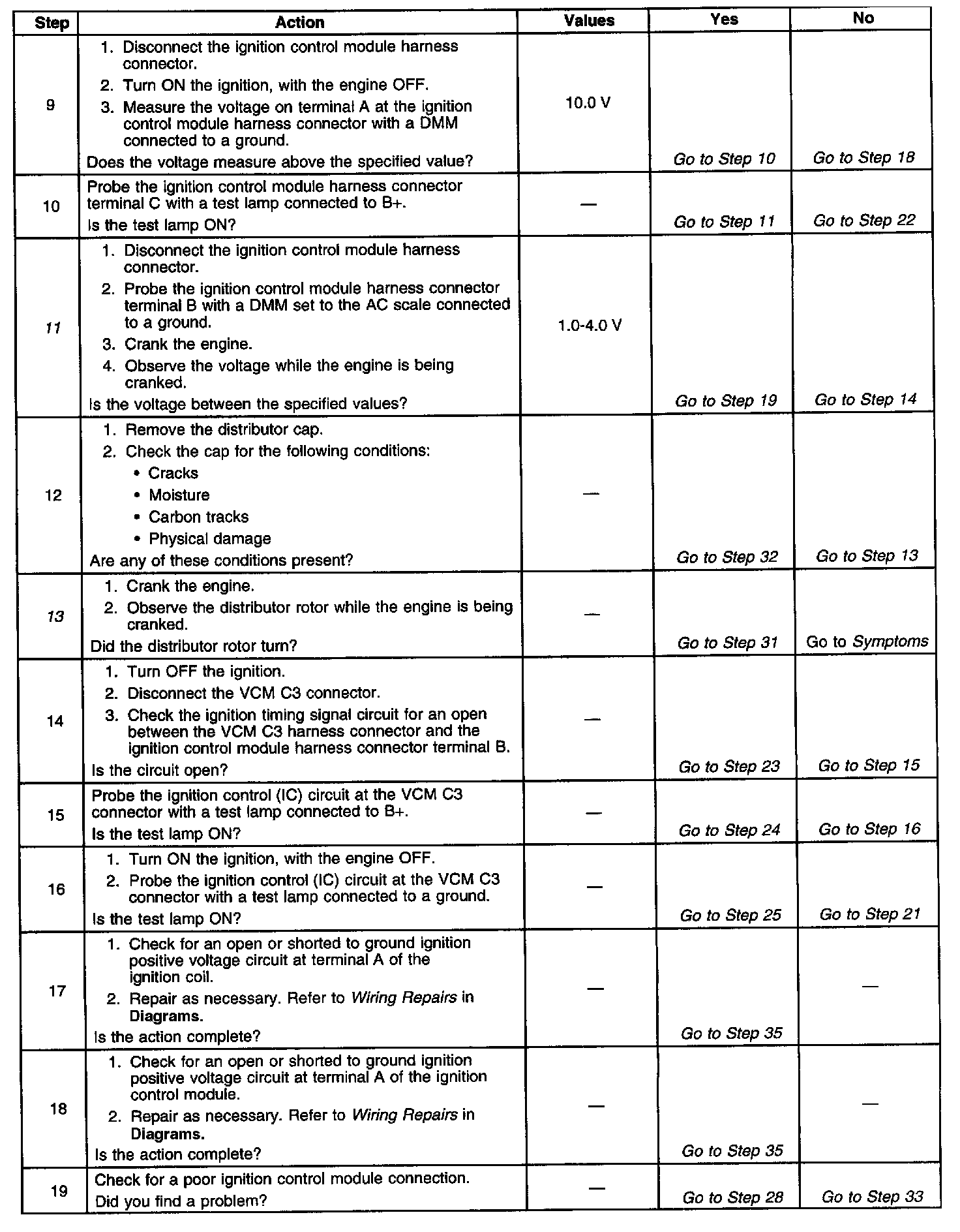 The numbers below refer to the step numbers in the diagnostic table.