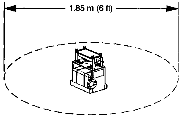 9. Clear a space on the ground about 1.85 meters (6 ft) in diameter for deployment of the module. If possible, use a paved, outdoor location free of activity. Otherwise, use a space free of activity on the shop floor. Make sure you have sufficient ventilation.