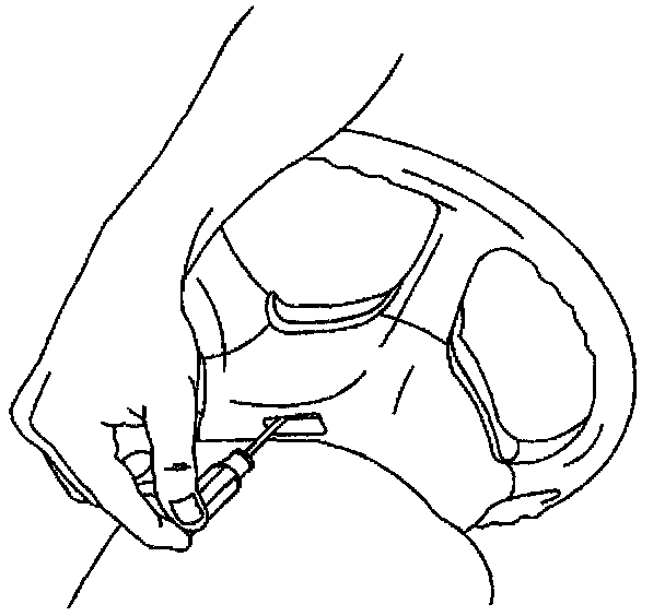 6. Insert a screwdriver into the remaining access holes and push the leaf spring to release the notched pin that retains the inflator module.