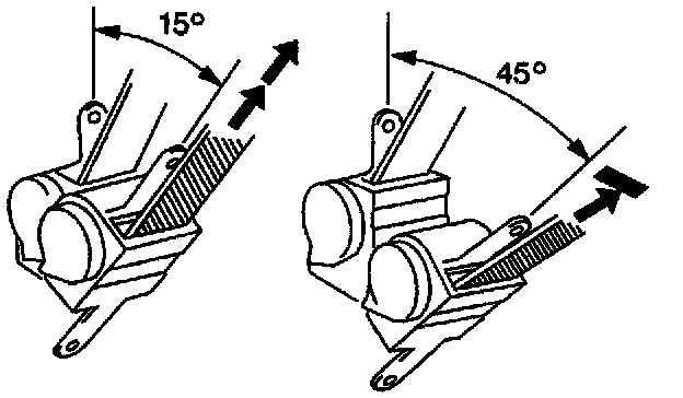 4.3. Ensure that the seat belt webbing can be pulled from the retractor at an inclination of 15 degrees or less and cannot be pulled from the retractor at an inclination of 45 degrees or more.